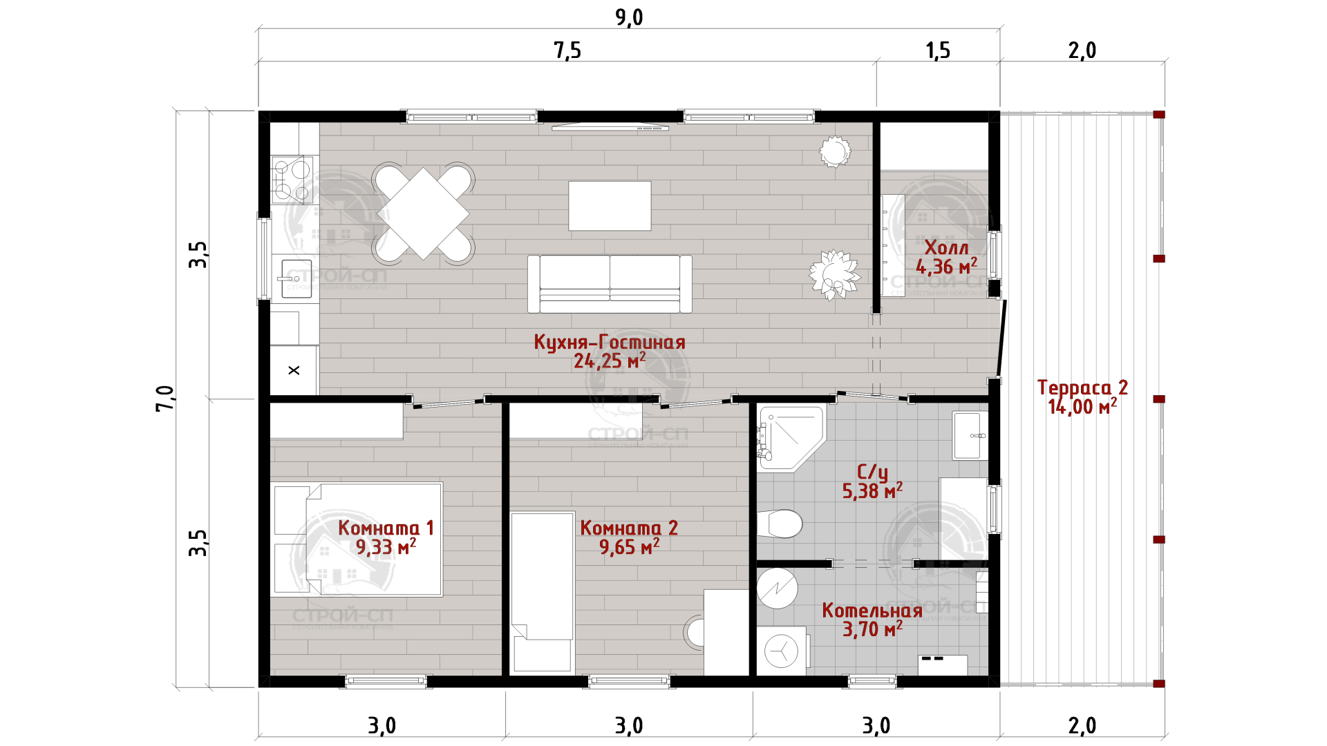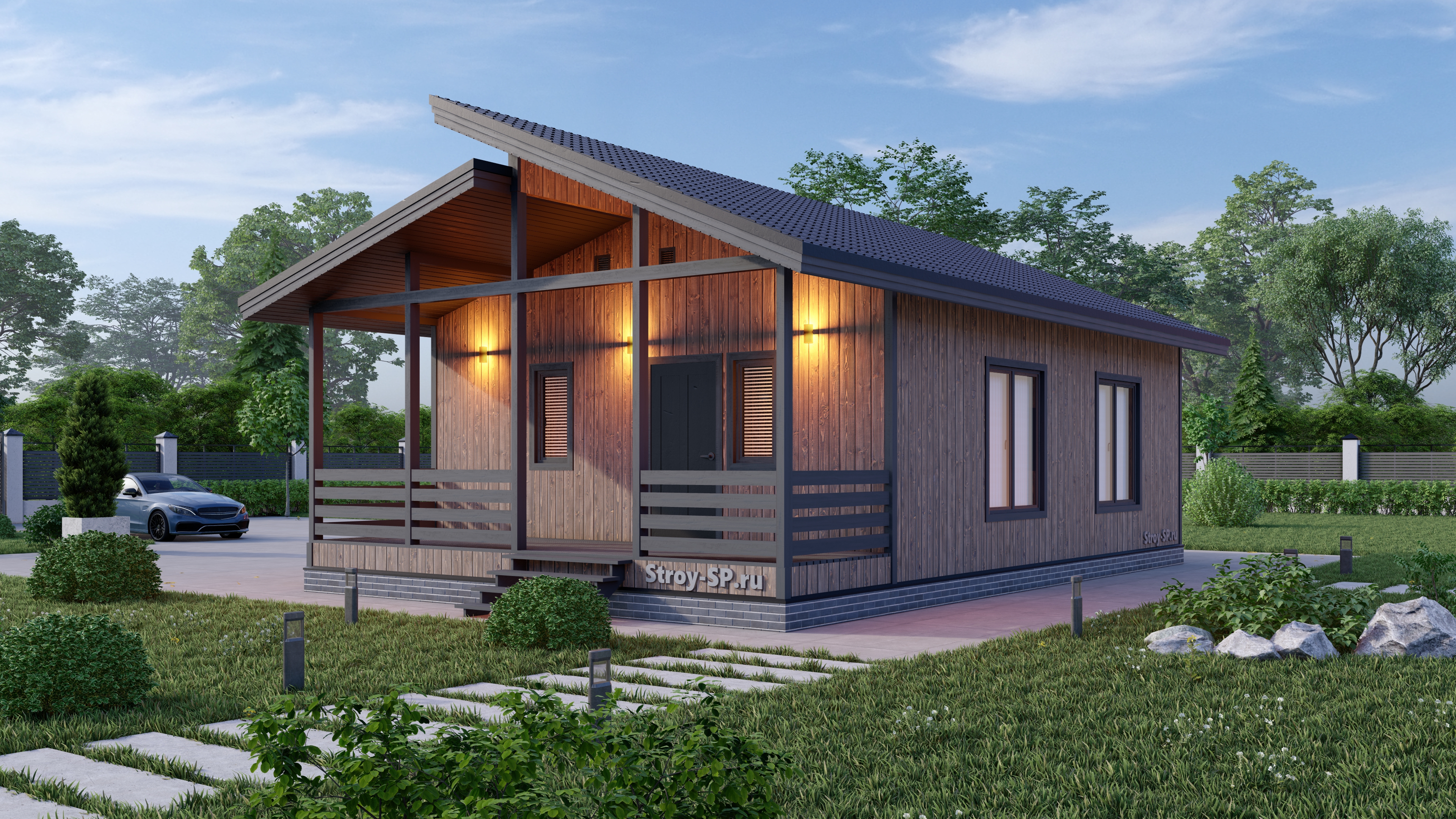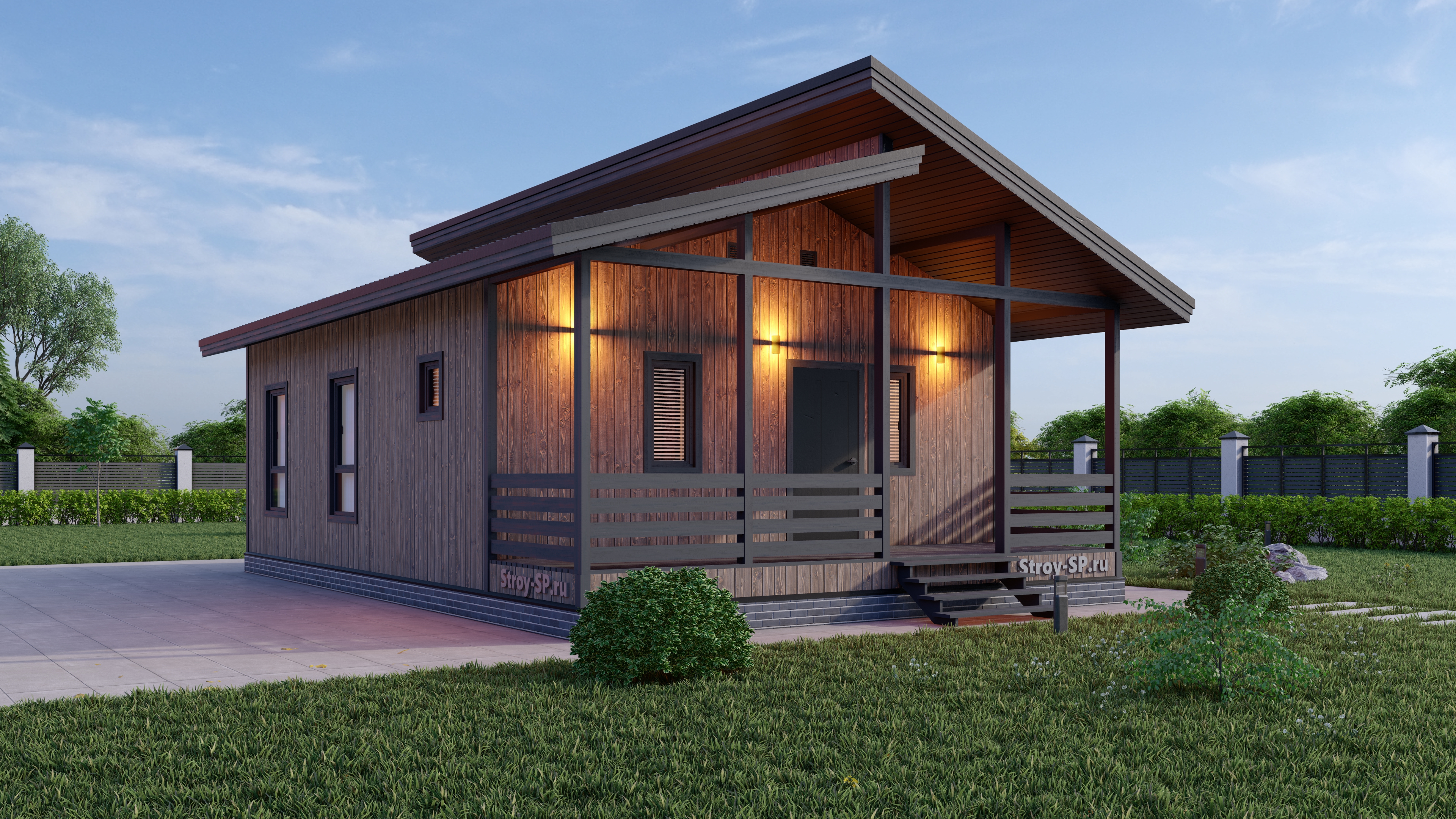 Проект скандинавского одноэтажного каркасного дома 9 на 7